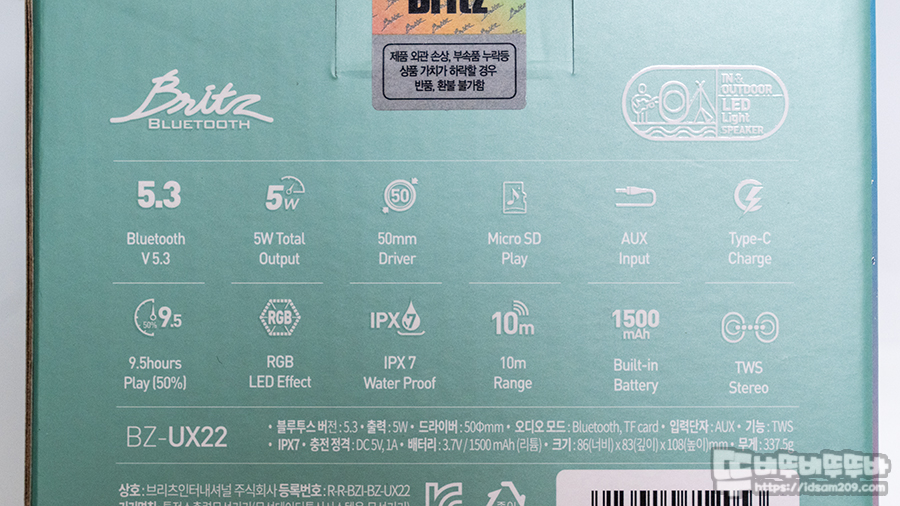 #브리츠 #Britz #포터블 #아웃도어 #블루투스 #스피커 #BZ #UX22 #뚜비뚜비뚜뚜바 #idsam209