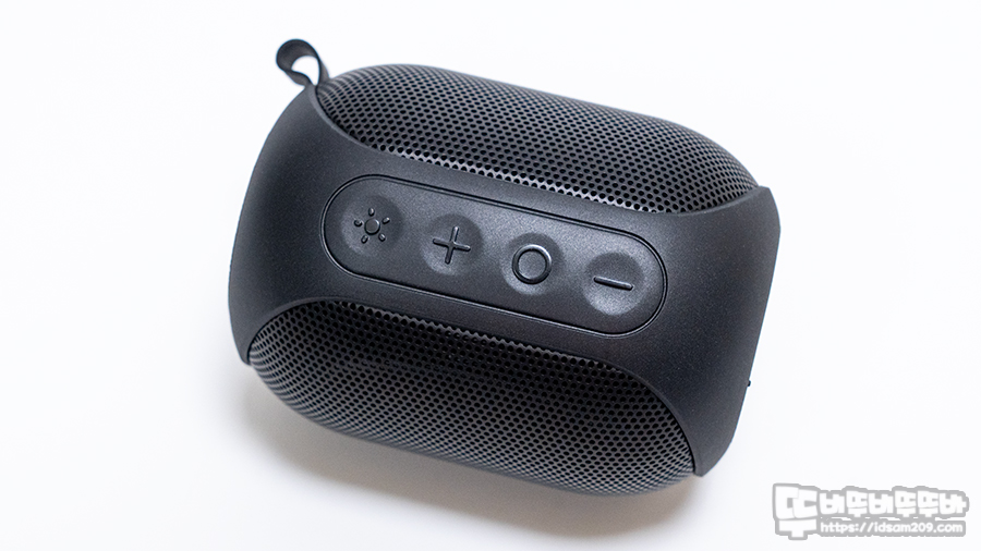 블루투스 스피커 조작은 3 버튼 컨트롤 구조에 LED 효과를 담당하는 버튼이 추가된 컨트롤 버튼 구조로 되어있고요.