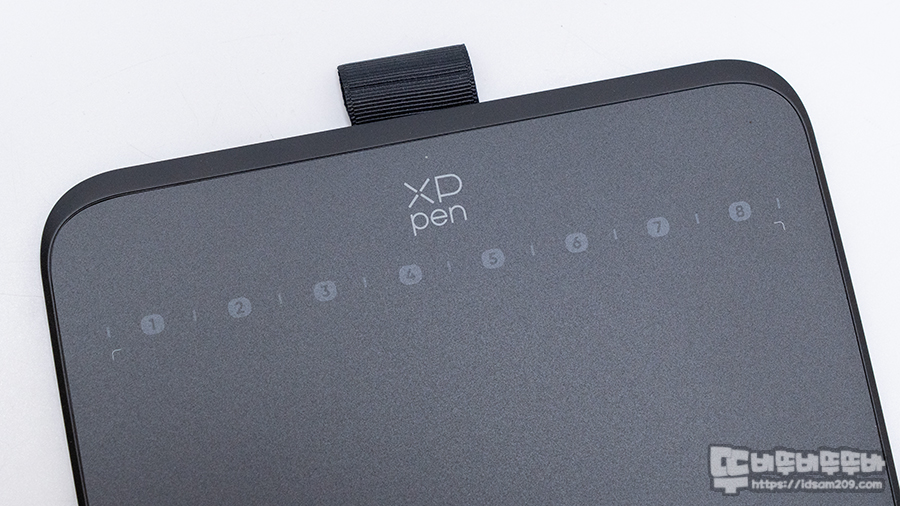 작고 슬림 하기에 책상에 많은 영역을 차지하지 않아 사용하기 좋지만 펜으로 콕콕 선택해서 사용해야 하는 단축키는 눈으로 보고 선택해야 하기에 모니터 화면을 보고 드로잉 작업을 해야 하는 경우는 작업 흐름에 방해가 되는 요소지만 물리적인 버튼 또는 정전기 방식의 경우 무의식적으로 오동작할 수 있기에 나름 오작동 없는 부분이라 나름 장점이라 볼 수 있을 거 같습니다.