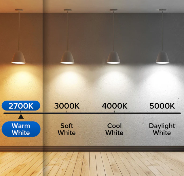 우리가 보통 집안에서 사용하는 LED 전구는 주광색이라고 하는 데이라이트 화이트로 5000K 밝기를 사용하는데 보통 전구색으로 분류되는 2,700K 색감의 전구색 느낌이라 따뜻함을 느낄 수 있습니다.