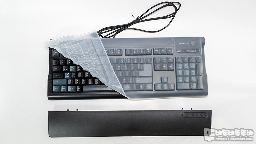 2~3장의 필름이 접점을 이루는 맴브레인 키보드는 6+1키, 18키, 20키 등 키보드 매트릭스 구조에 따라 일부만 동시입력 지원하는 게 보통이지만 스카이디지털은 10년 전부터 모든 키가 동시에 눌리는 N 키 롤오버 기능을 지원하고 있어 이 부분에 있어서 꽤 독보적입니다.