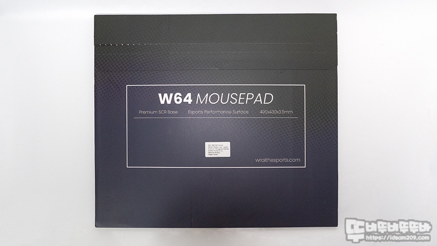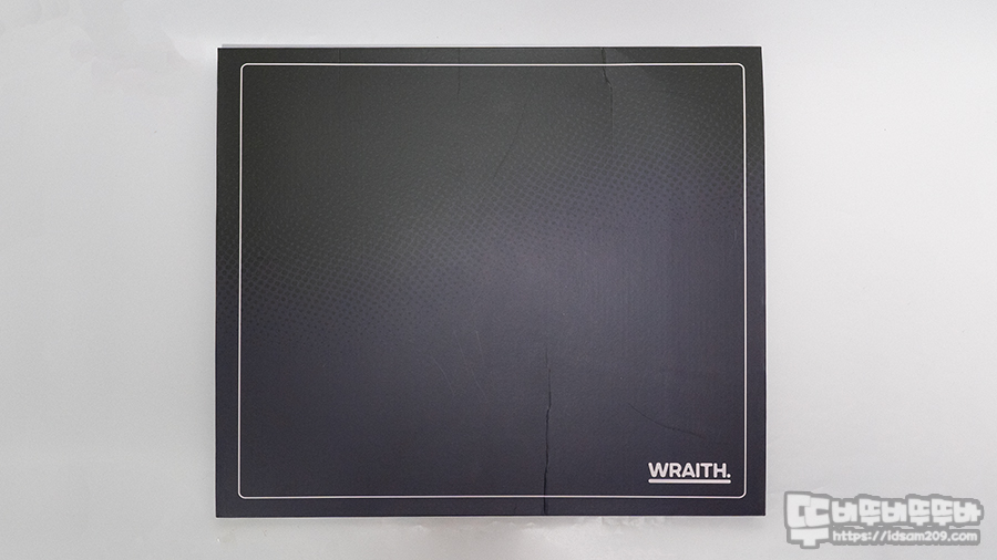 제품의 패키지는 특별한 인쇄가 없이 마우스 패드 테두리 라인과 WRAITH 로고가 인쇄된 게 실제 마우스패드 모습과 동일한 형태를 패키지에 담아내고 있습니다.