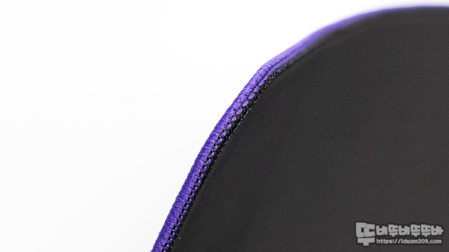 마우스 테두리를 감싸고 있는 오버로크는 패드 두께인 3.5mm 보다 얇게 되어 있어 패드 모서리 부분에 손을 걸쳐도 손바닥 눌림이 없는 편이네요.
