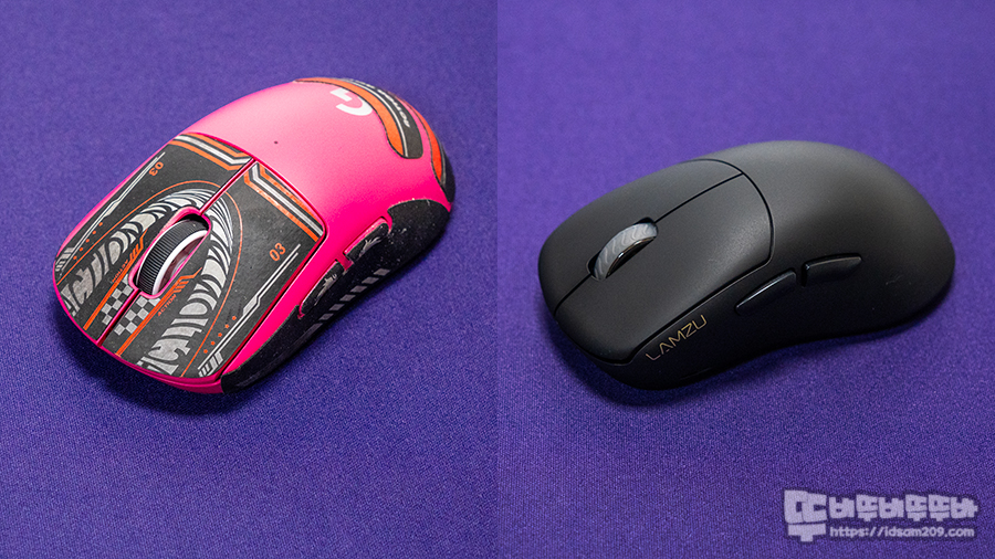 메인 테스트로는 로지텍 G Pro X Superlight + QI 무선 충전 코일 장착 (67g) 서브 세트로는 LAMZU THORN (52g)로 진행해 보았는데요.