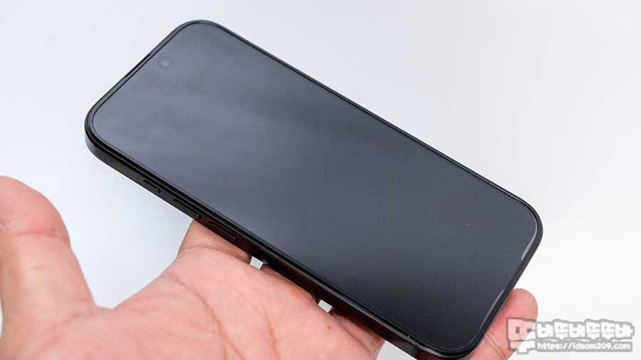 아이폰 16 Pro 부착한 필름을 살펴보면 살짝 두께감이 느껴지는 알루미늄 프레임을 확인할 수 있는데요.