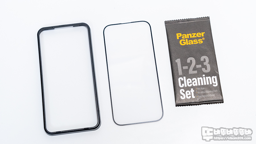 제품은 부착 가이드 트레이, 강화유리 필름, 3종 클리닝 세트로 구성되어 있고요.