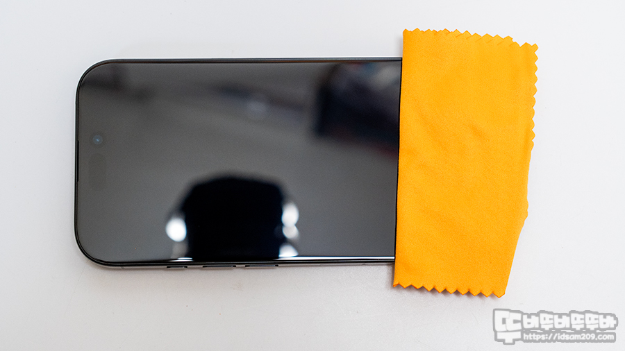 먼저 알코올 페이퍼를 이용하여 아이폰 전면을 클리닝해줍니다.