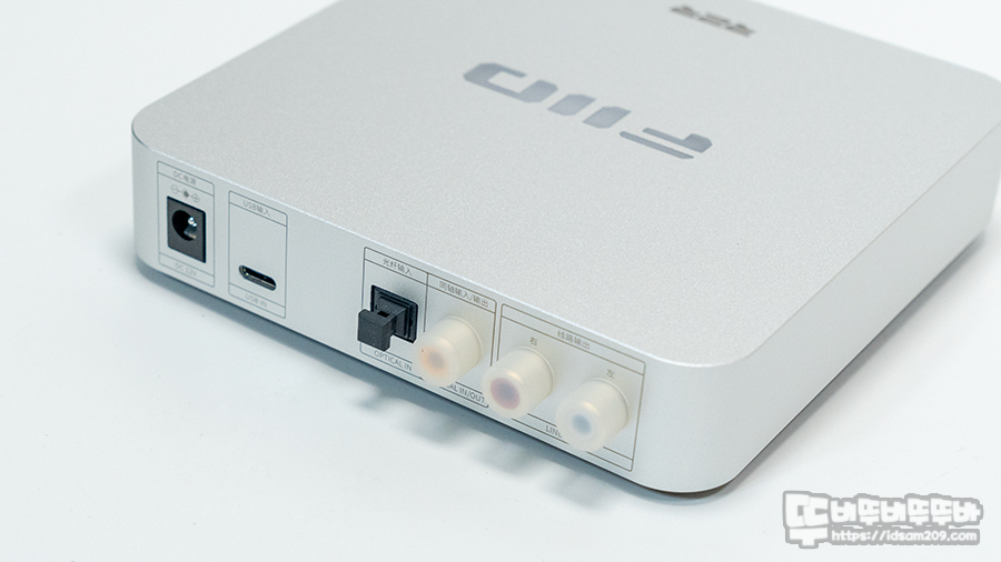 뒷면에는 DC 12V 소켓, USB-C 입력단자, 광 입력과 코엑시얼 In/Out 그리고 RCA 출력으로 구성되어 있네요.