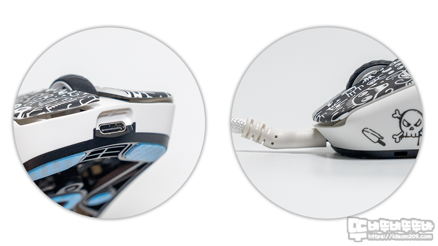 마야 두들 에디션은 미국의 마우스 도색 아티스트 Nachocustomz 협업으로 만들어진 에디션으로 인터넷으로 핫한 미스터 두들과는 다른 느낌인데요. 버튼 부는 블랙 바탕에 화이트 컬러 낙서 그 외 하우징은 화이트 바탕에 블랙 컬러 낙서로 구분감을 주고 있고요.