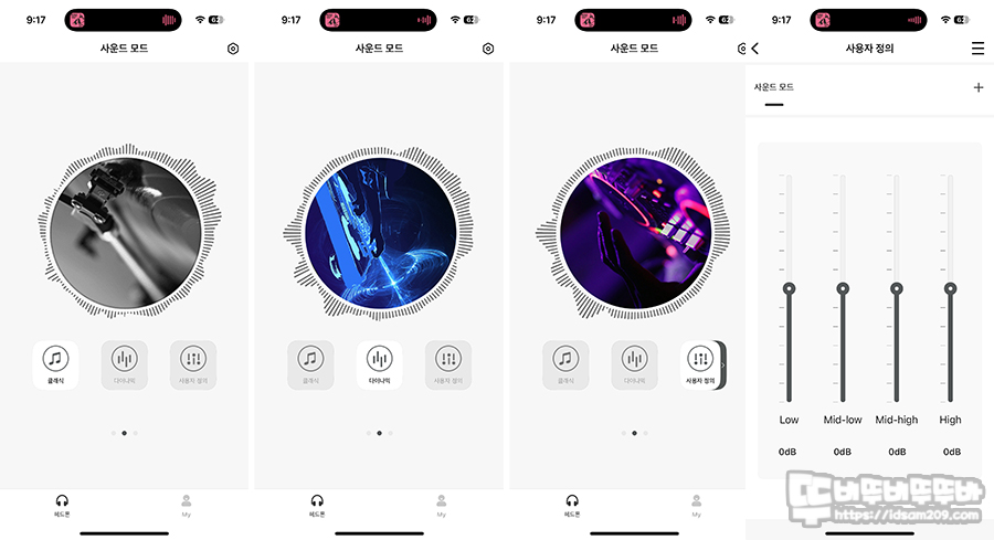 두 번째 사운드 모드에서는 클래식, 다이나믹, 사용자 EQ 설정으로 다양한 음색으로 사운드를 즐길 수 있게 구성되어 있고요.