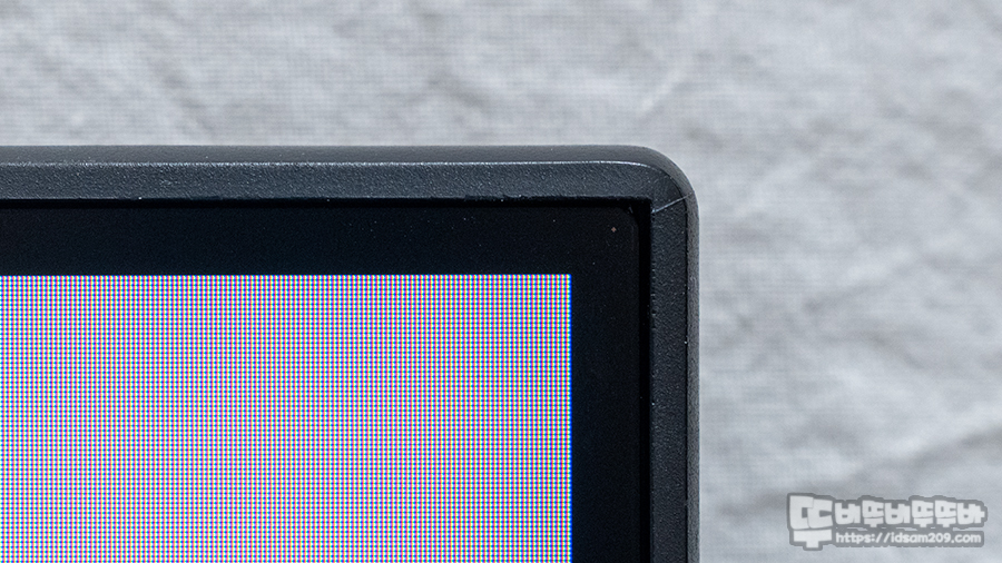 모니터는 테두리 부분은 얇고 IPS 패널 끝부분에 블랙으로 처리된 이너배젤이 적용되어 있는 것을 확인할 수 있는데 요즘 나오는 대부분의 모니터와 비슷합니다.