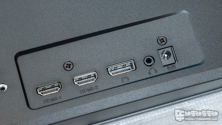 먼저 모니터를 구입하면 스탠드를 설치해야 하잖아요. 스탠드를 설치하는 김에 뒷면이 어떤 구성으로 되어있는 지도 살펴보겠습니다.
