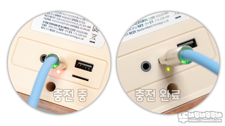 USB-C 단자를 이용하여 충전 시 LED 인디케이터가 Red LED 점등으로 충전이 되며 완충 시 Green LED로 표현됩니다.