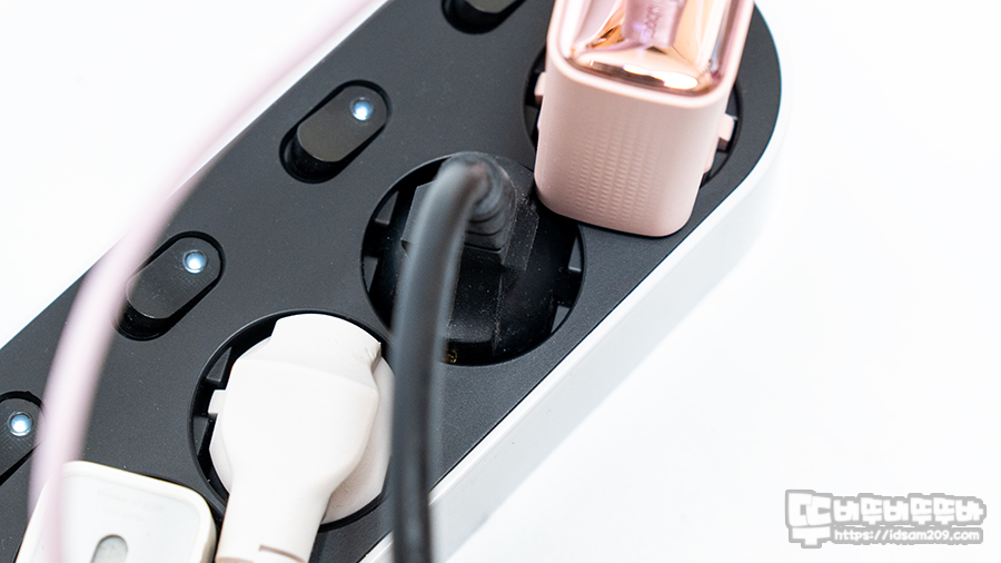 멀티탭의 첫 번째 구멍과 네 번째 구멍에는 벽면에 고정이 가능한 나사를 넣어 활용할 수 있는 나사 홀을 제공하고 있지만 사용 가능한 나사 규격은 확인할 수 없는 부분은 아쉬움으로 남습니다.