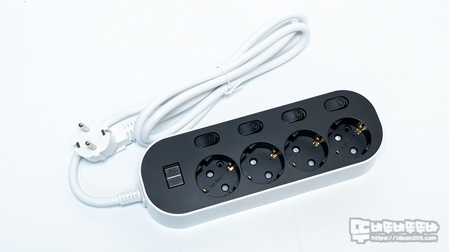 KC 인증이 적용된 16A를 지원하는 250V 사용이 가능하며 멀티탭의 개별구에 접지 핀이 있듯이 벽면 콘센트에 접지가 가능하게 구성되어 있습니다.