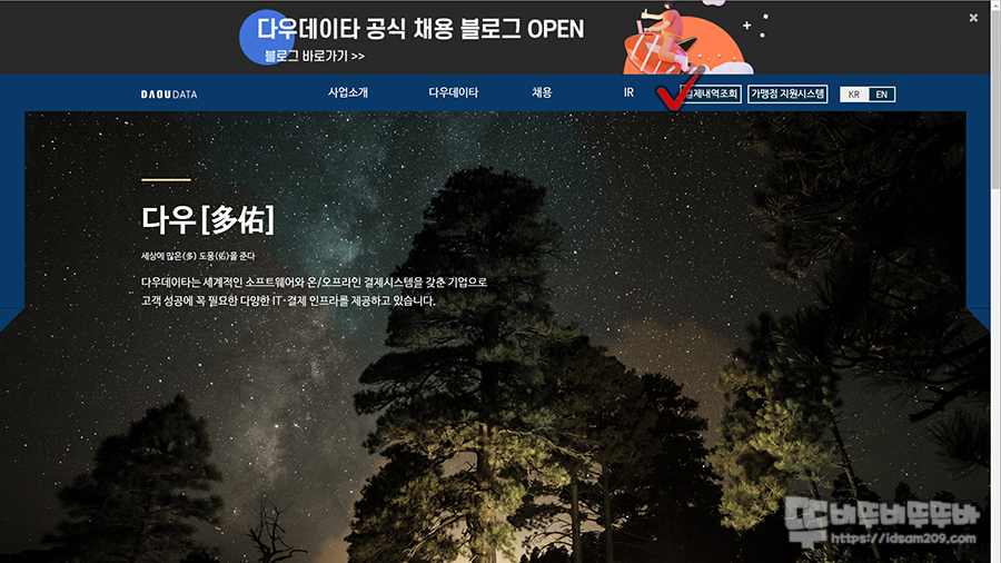 인터넷에서 폭풍 검색을 해보는데 시그마페이먼트와 다우데이타라는 내용이 보이길래 다우데이터 홈페이지에 들어가 보았습니다.