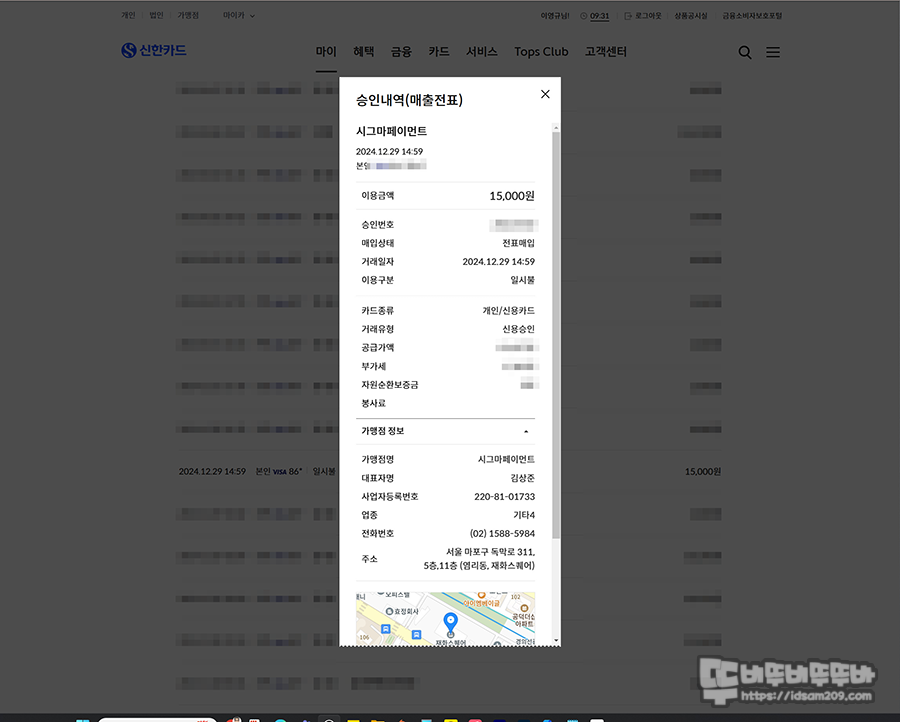 시그마페이먼트 회사가 제가 사는 거주지가 아닌 마포구에 있는 것으로 보아 카드 결제 대행사가 맞는 거 같은데.....