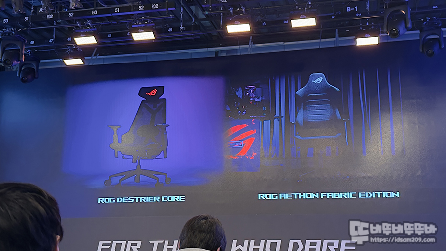 대망에 마지막 섹션인 게이밍 기어 소개에서는 앞서 설명드린 마우스, 키보드, 파워 서플라이 설명과 더불어 허먼밀러와 견주어도 밀리지 않는 편안한 제공하는 ROG 게이밍 체어 소개가 이어졌네요.