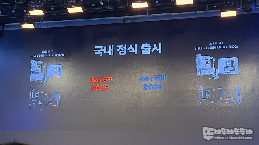 첫 번째 순서로 메인보드 소개로 B850과 B860 라인업 소개가 진행되었습니다.