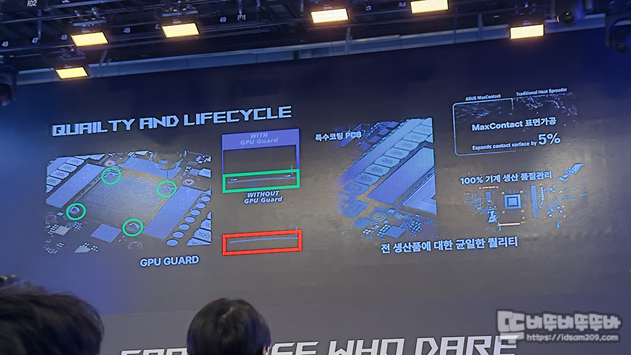또한 GPU 모서리 부분에 GPU 가이드가 적용되어 코어 깨짐을 방지하고 PCB 표면을 특수 코팅 처리가 적용되었다고 합니다.