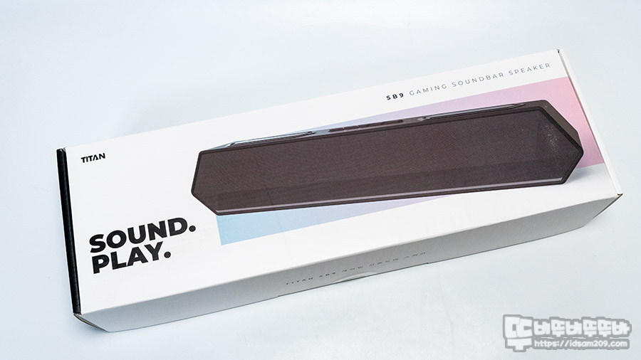 제닉스 TITAN SB9 사운드바 스피커 패키지는 제품 이미지와 Sound Play라는 간결한 문구로 제품의 특징을 표현하고 있는데요.