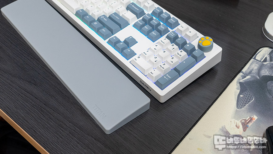책상을 아이 책상으로 옮겨 키보드와 팜레스트 색감 매칭을 살펴보았습니다.