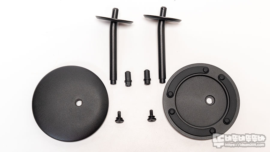 스탠드 구성을 디테일하게 살펴보면 받침대와 길고 짧은 스탠드 그리고 고정 나사로 구성되어 유저가 원하는 스타일로 스탠드의 형태를 선택하는 부분이 맘에 들었으며 길이가 긴 스탠드는 꽃받침 형태가 추가되어 스피커 거치 시 안정감을 주었습니다.