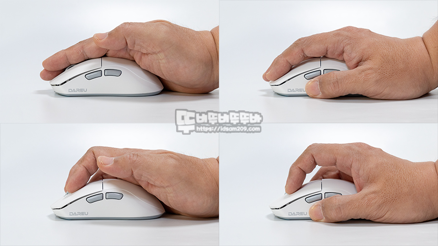 필자는 한 뼘으로 F11, 중지 기준 F10 절반 손크기를 가지고 있는데 다얼유 A950 WING 마우스를 그립 시 꽉 차지 않고 편안하게 그립이 가능했습니다.