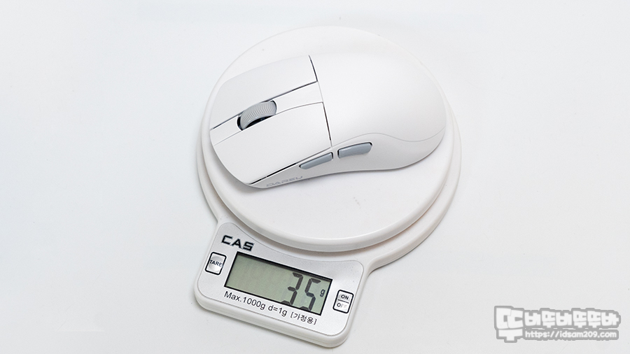 솔리드 하우징으로 마우스에 타공이 없음에도 35g 무게로 역대급 초경량 제품으로 출시되었는데 무게가 가벼운 만큼 초반에 생각보다 더 많이 움직이는 문제로 가벼운 무게를 인식해서 그런지 손에 힘이 더 들어가게 되는군요.