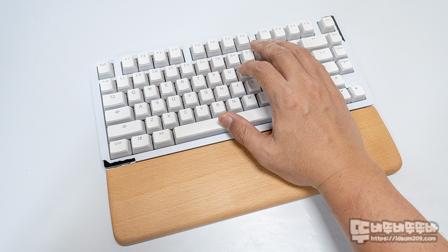 안정적인 타이핑을 위해서는 SPM과 같이 팜레스트 중간 이후부터 깎이는 각도가 적요된 팜레스트를 사용하시는 걸 추천드립니다.