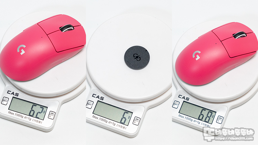 파워플레이2 코인을 지슈라1에 적용했을 때 무게의 차이를 1g 단위로 측정 가능한 디지털 저울로 측정해 보면 62g으로 측정되는 지슈라 1 모델이 68g으로 6g 정도 무거워진 것을 확인할 수 있는데요.