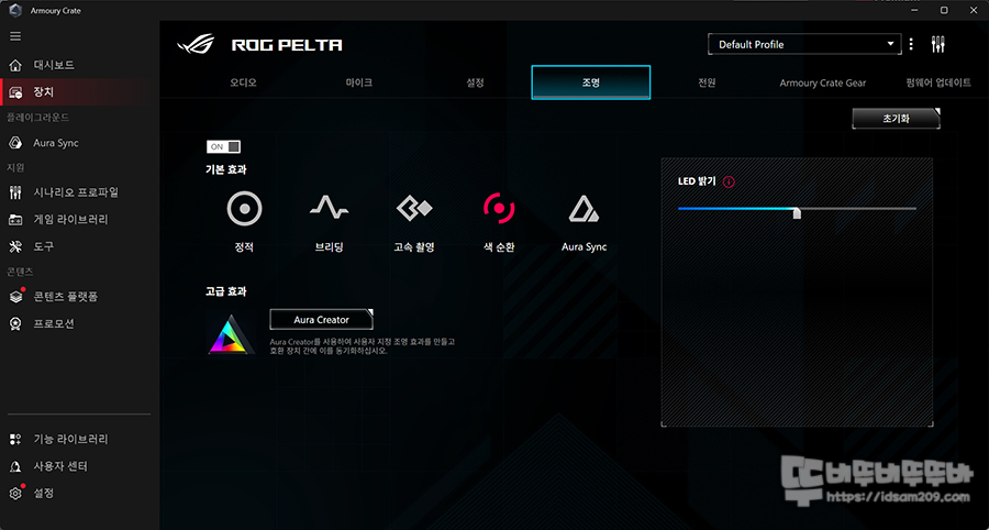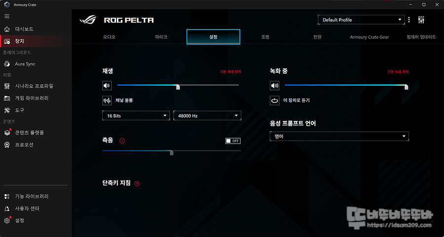 Armoury Crate 통합 소프트웨어를 사용하는 만큼 ASUS ROG PELTA 헤드셋이 연결되면 해당되는 업데이트를 통해 다양한 설정이 가능한데요.