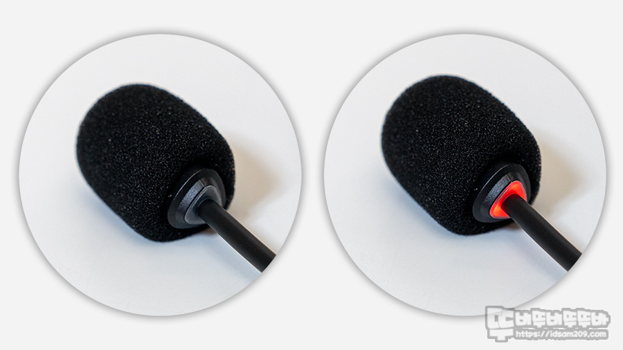 또한 마이크 뒤쪽에 LED가 내장되어 마이크 사용 시 LED Off, 마이크를 사용하지 않을 때 LED On으로 표현하여 직관적으로 확인하는데 도움이 됩니다.
