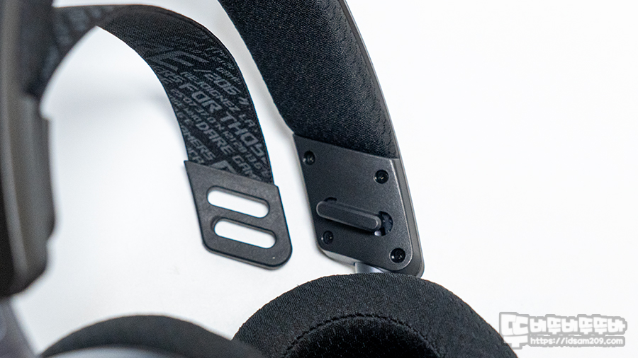 헤드셋 헤어 프레임 겉면에 인쇄된 각인 모습.