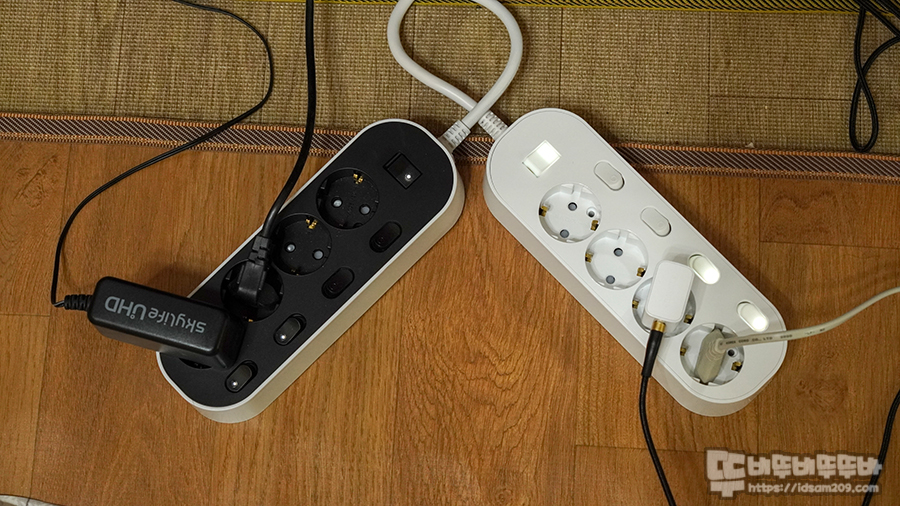 장모님께서 시골이에 거주하시다 보니 낙뢰가 칠 때 TV 관련 제품만 끄고 싶은데 멀티탭 하나에 몰려있어서 불편하다고 하셔서 기존의 사용 중인 엘리펀탭 4구 블랙에 화이트 4구 제품을 추가하여 장모님이 원하시는 구성을 만들어 드렸네요.
