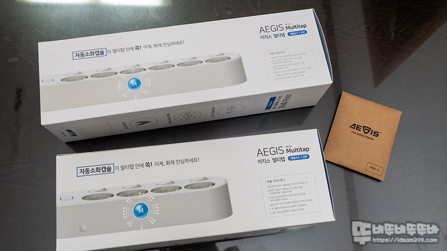 어버이날 특가 세트는 쇼핑백에 담겨있는 개별 4구 1.5M 화이트 + 개별 6구 1.5M 화이트 + 화재 초기 진압용 AEGIS PAD-S (소화 패치 5개입) 등으로 구성되어 있는데요.
