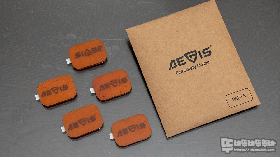 특히 5개로 구성된 소화 패치인 AEGIS PAD-S는 개별로 사용이 가능하여 적재적소에 사용 시 화재 발생 시 빠르게 초기 진압을 해주기에 소화기를 찾아서 화재 지점을 찾는 것보다 빠르게 반응할 수 있습니다.