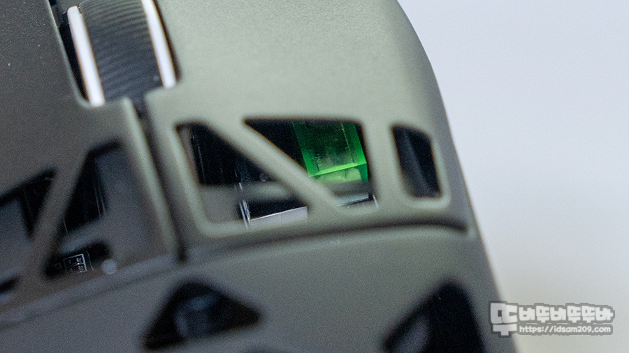 마우스 바닥면에 위치한 DPI LED 인디케이터 모습.