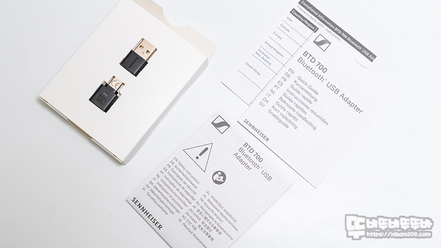 젠하이저 USB-C 타입의 BTD 700 USB 동글은 기본 USB-C 타입으로 되어 있어 있으며 전면에는 젠하이저 로고 각인과 앞뒤 면에는 LED 인디케이터로 디자인되었으며 PC 또는 스마트폰, 태블릿, 콘솔 게임기, 스위치같이 USB-C 단자 또는 USB-A 단자를 사용하는 기기에 연결하여 사용할 수 있습니다.