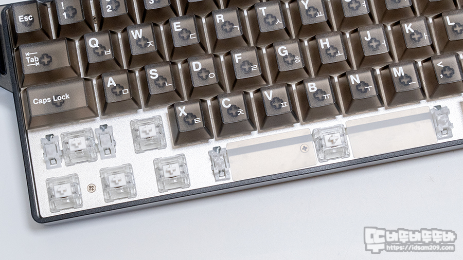 다얼유 COOL60는 알루미늄 보강판에 윤활 처리된 스빌라이저 스페이바 주변의 타공면은 실리콘으로 잘 커버가 되어있습니다.