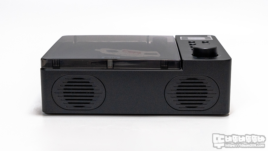 제품의 디자인 컨셉은 턴테이블을 모티브로 하고 있어 먼지 커버를 열고 톤암을 이동시켜 작동하는 방식은 실제 턴테이블과 유사해 아날로그 감성을 제대로 느낄 수 있습니다. 이러한 점 덕분에 단순한 플레이어를 넘어 감성적인 오디오 기기의 매력을 보여줍니다.