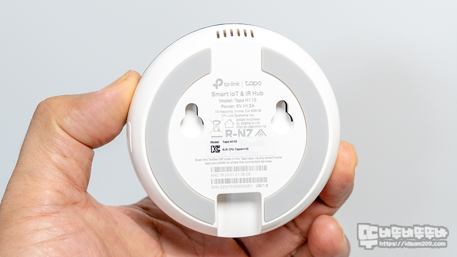 Tapo H110 스마트 적외선 IoT 허브는 지름 79mm에 32mm 두께로 반구 형태로 디자인되었으며 IR 센서가 수신되는 전면은 IR 센서 투과용 소재가 사용되었으며 tapo 로고 아래는 LED 인디케이터가 위치하고 있습니다.