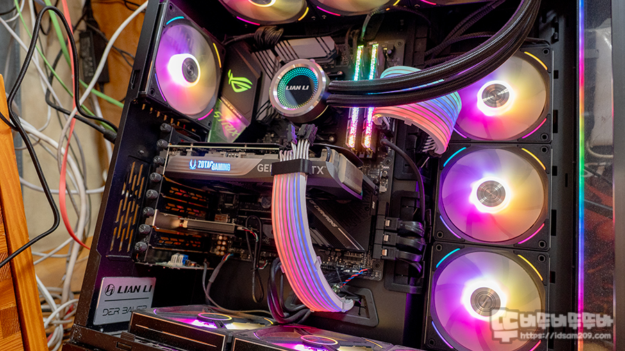 PC 본체의 그래픽카드 아래쪽에 부착된 랜카드 모습.