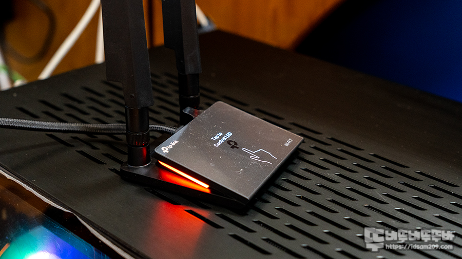 특히 안테나에 표현되는 LED 효과는 Wi-Fi 7 6GHz 320MHz 대역폭으로 사용할 경우 RGB 스펙트럼으로 표현되며 그 외에는 상단에 로고를 터치 시 화이트 / 오렌지 / 블루 컬러 점등으로 표현되는데 Wi-Fi 연결이 되지 않을 경우는 점멸로 상태를 표현하니 눈으로 상태를 빠르게 확인할 수 있어 좋았습니다.