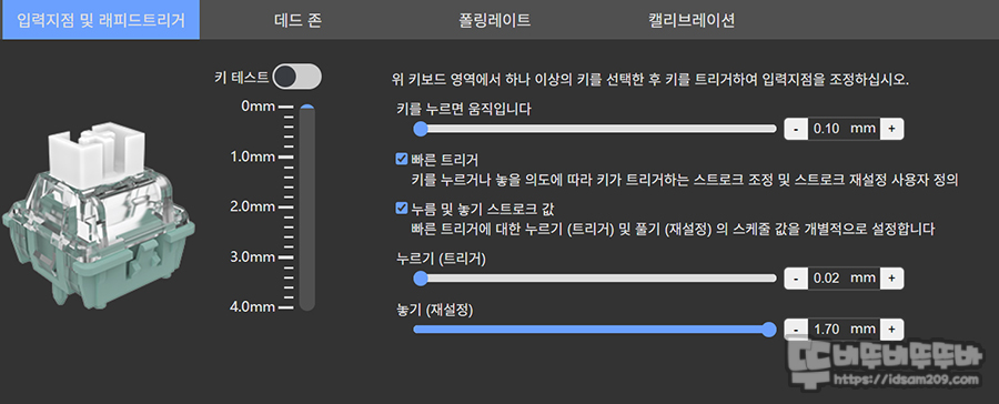 키 지정 - 래피드 트리거, 데드 존, 폴링 레이트, 캘리브레이션