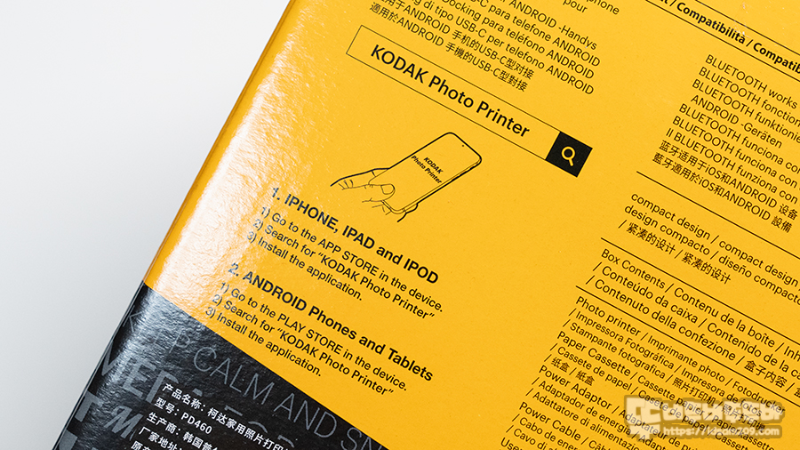 패키지의 다른 면을 살펴보면 애플의 IOS 기기와 안드로이드 스마트폰과 태블릿에서 사용이 가능하며 KODAK Photo Printer 앱을 사용해야 하니 참고하시고요.