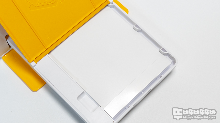 전면의 커버를 오픈하면 분리형으로 포장되어 있는 프린트 용지 트레이를 장착할 수 있게 디자인되어 있고요.