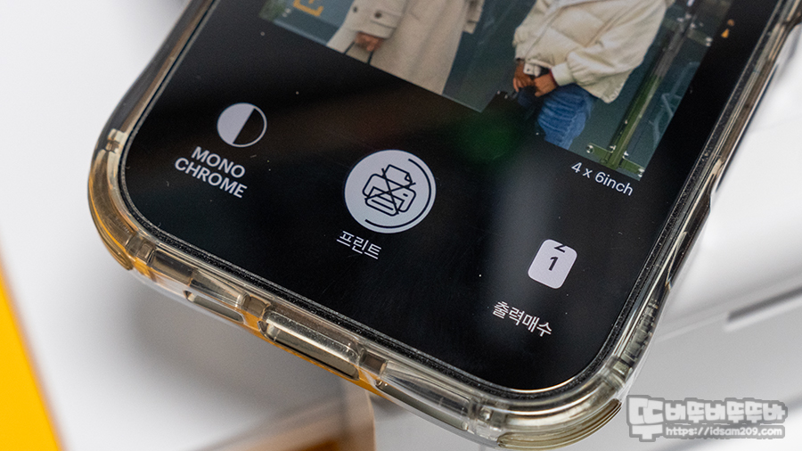 편집 메뉴에서는 흑백 사진 모드인 Mono Chrome 모드와 사진에 프레임 추가/해제, 편집 기능으로 사진에 디테일을 살릴 수 있으며 프린트 매수는 1~5장까지 출력이 가능합니다.