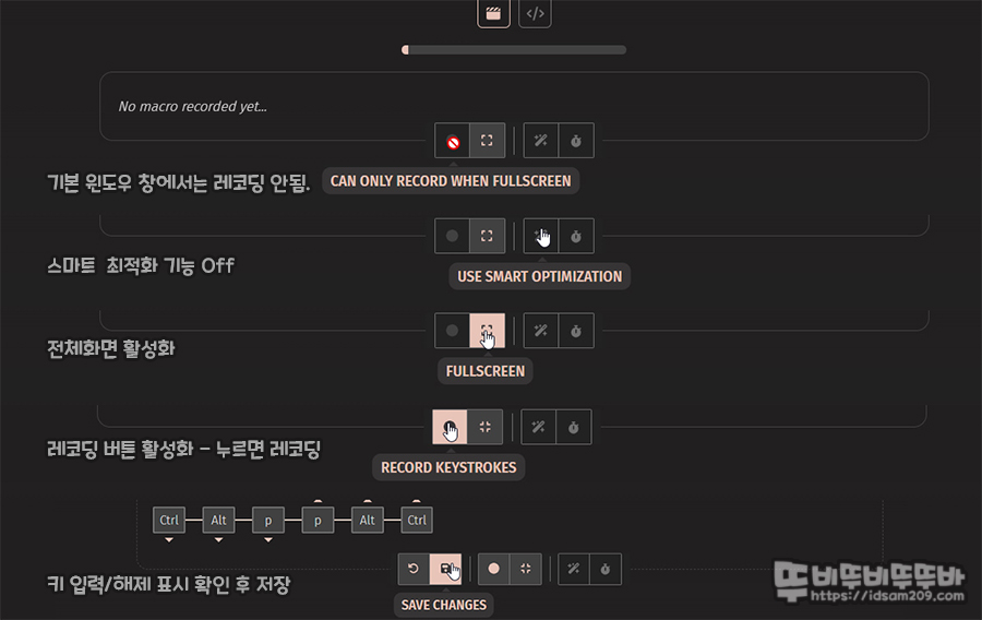 여기까지는 가장 기본적인 내용이지만 다음부터는 키붐 매크로 편집 패드 CYBRIX 16에 가장 중요한 부분이니 집중하시기 바랍니다.