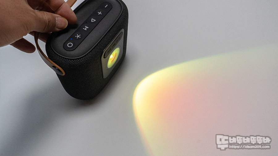 블루투스 스피커의 70mm 드라이버 유닛이 전면을 향하고 있을 때 LED 무등은 스피커의 뒤쪽에 위치하고 있어 간접조명 느낌으로 활용하게 되는데 벽면의 위치 선정에 따라 좋은 분위기 연출이 가능하니 참고하시기 바랍니다.